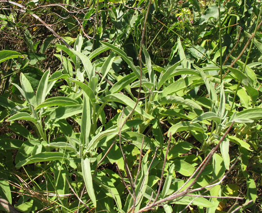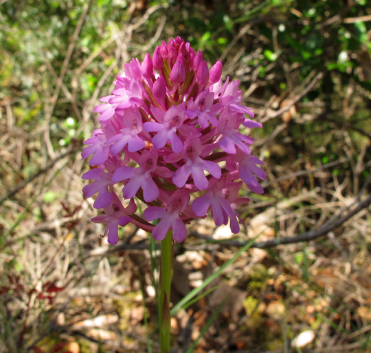 Der „schlichte“ grüne Eindruck im Vordergrund lässt nicht erkennen, dass hier sehr hübsche bunte Schätze in der Macchie und zwischen Olivenbäumen still und im Verborgenen blühen. Ein Tausendguldenkraut mit seinem zarten Rosa begleitet immer wieder die Wege, einzeln, in kleinen Gruppen – oder sogar kleine Flächen bildend.