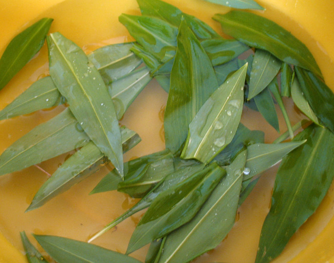 Mittelnerv ist stärker zu sehen. Bärlauchblätter sind schön