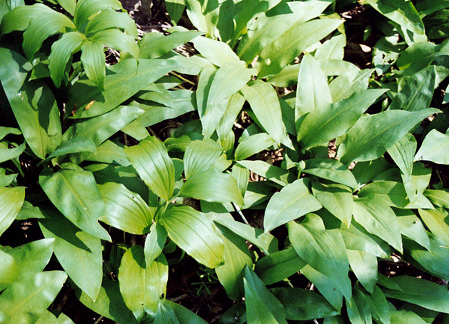 Die einzelnen Blätter sehen Bärlauchblättern wohl ähnlich, die Pflanze in ihrer Gesamtheit sieht sehr anders aus. In Au-Standorten mischt sich die Auen-Weißwurz manchmal sehr eng unter einen Bärlauch-Bestand. |