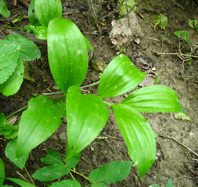 Ich hoffe, es ist für dich glasklar zu erkennen, dass etwas links von der Mitte und links ganz oben zwei große Exemplare der Auen-Weißwurz zu sehen sind... und die restlichen Blätter Bärlauchblätter sind. In der Mitte ist noch eine kleine Weißwurz darunter. . |