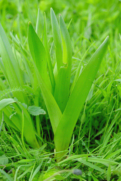 Der schönste Blätterbestand auf einem "offenen" Gelände, schon gar einer Wiese die gemäht wird, ist daher mit sehr hoher Sicherheit kein Bärlauch. Die Blätter sind ineinander verschachtelt und wirken insgesamt wie eine Mischung aus Tulpenblättern und Porree. Ein Stängel, auf dem die Blätter sitzen und wie ihn Bärlauchblätter haben, fehlt der Herbstzeitlose. Die Blätter sind dickfleischer als Bärlauchblätter. |