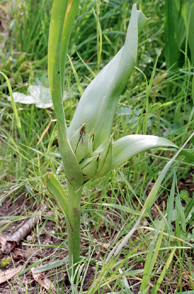 Langsam entwickeln sich dann auch die recht großen Früchte, die aber bereits im Herbst im Boden ihren Anfang genommen haben. Sie werden durch das Blattwachstum aus der Erde empor gehoben. |