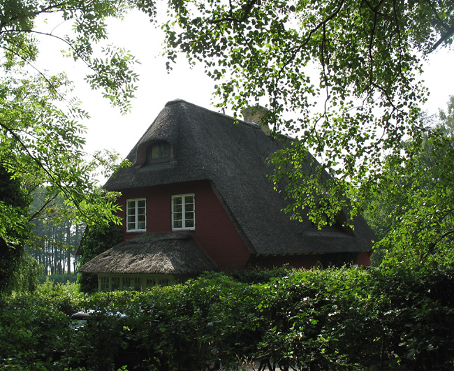 Nicht sehr häufig, aber hin und wieder sind auch klassisch reetgrasgedeckte Häuser zu sehen. |